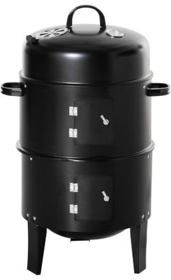 16 Inch Vertical Charcoal BBQ Smoker, Heavy Duty 3-in-1 Round Portable Outdoor Charcoal Barbecue Smoker Grill with Thermometer, 2 Cooking Area for Cam$65Aurora, IL