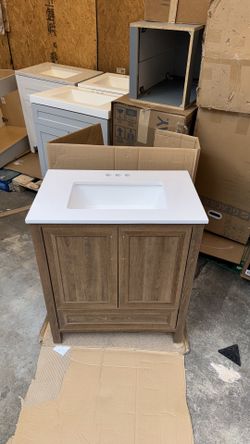 30” Single Sink Freestanding Aged Oak Bath Vanity with White Engineered Stone Top (Assembled)$300Tujunga, CA