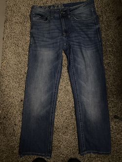 Rock Revival bootcut jeans with a dark wash, white stitching$15Houston, TX