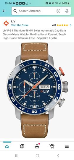 LIV P-51 Titanium 46MM Swiss Automatic Day-Date Chrono Men's Watch - Unidirectional Ceramic Bezel- Hig$1,650Buena Park, CA