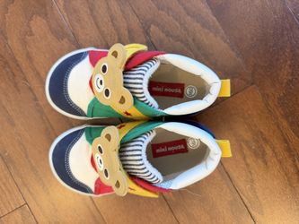 Miki House second baby shoes with a colorful multi-color scheme and a bear motif$50Cary, NC