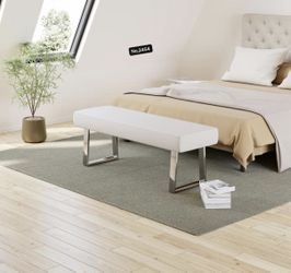 55”Bedroom Bench, Bed end upholstered Bench, Indoor Corner Small Footstool with Metal Legs, for Kitchen entryway Dining Room ,White$55El Monte, CA
