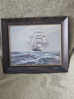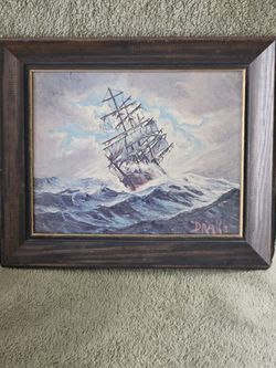 Vintage Ship painting oil on canvas signed by artist$130Chicago, IL