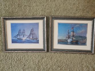 Vintage metallic etched ship prints set of 2 framed 1976$30Chicago, IL