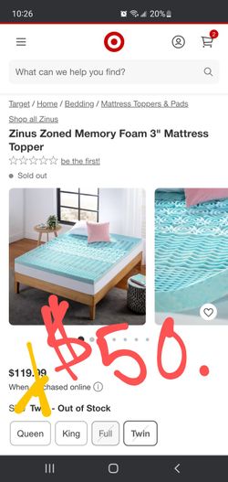 Zinus Zoned 3 Inch Mattress Topper$50Stockton, CA