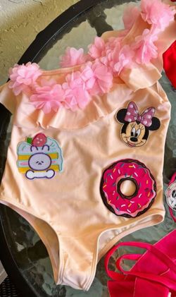 Swimsuit dress with bow for girls 4-6 years with sets of embroidery fun cartoon patches for kids on attach/disattach water proof and chlorine proof$60Halndle Bch, FL