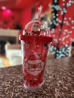 Super cute Santa tumbler with straw, snowflakes and fun holiday frozen design!