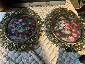 Real Flower Display In Antique Convex Bubble Glass Frame Set$100Northfield, NH