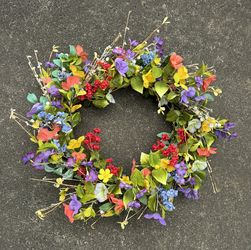 Festive Spring/Summer Multicolored Flowered Grapevine Wreath 24”x24”$30Charlotte, NC