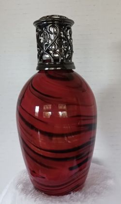 Red Blown Glass Fragrance Diffuser Lamp With Black Swirling Designs - Catalytic$15Charlotte, NC
