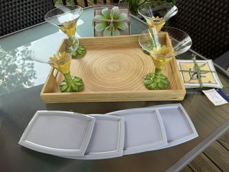 18” Wooden Serving Decorative Tray with Handles with Margarita Glasses, Cloth Coasters and Sunflower Candle$20Charlotte, NC