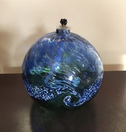 Vintage Hand Blown Pacific Rim Art Glass Iridescent Swirl Sphere Ball Oil Lamp$15Charlotte, NC