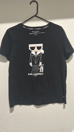Karl largefeld graphic tee featuring a cartoon illustration with his cat, Choupette shirt wmns size M$45Fontana, CA