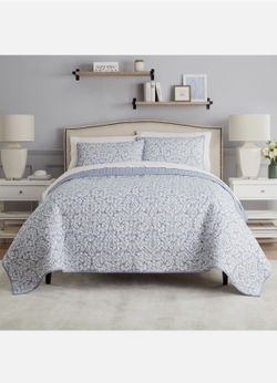 Waverly Luxury Microfiber King Size Quilt Set Dashing Damask Brand New$90Fontana, CA