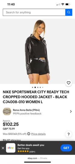 NIKE SPORTSWEAR CITY READY TECH CROPPED HOODED JACKET - BLACK CJ4008-010 WOMEN Size S$30La Mirada, CA