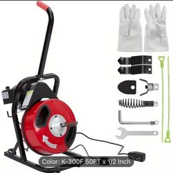 Drain Cleaner Machine K-300F 50FT 1/2inch, Sewer Auger Auto Feed With 4 Cutters & Foot Switch And Pair Of Gloves For 1 To 4 Inch Pipes, Red, Black$400Fontana, CA