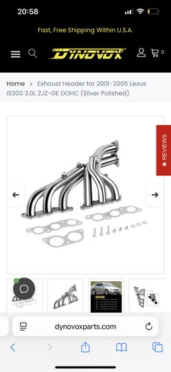 Exhaust Header for 2001-2005 Lexus IS300 3.0L 2JZ-GE DOHC(Silver Polished)$220Santa Ana, CA