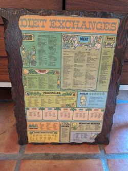 Vintage, Mid Century 1970 Home Made Decoupage Calorie Chart On Wood, Wall Hanging, Kitchen Decor$35Orange, CA