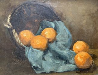 Vintage Still Life Painting Signed Audrey 1968 Fruit Basket Oranges Oil On Canvas. 16x12 inches, 20x16 with frame$50Miami, FL