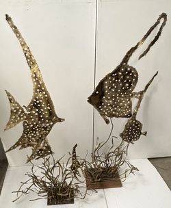 2 Brass Metal Kinetic Fish Sculptures 70’s Vintage Mid Century Modern Signed Brutalist Curtis Jere Bertoia Style$400Miami, FL