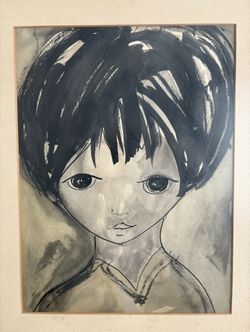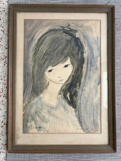 Lourdes Gomez Franca Cuban Artist Art Painting Vintage Mixed Media Watercolor Drawing 1960’s 1964 Boy Girl$250Miami, FL