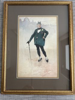 1921 Painting Antique Original Drawing Mixed Media Vintage Charles Dickens Book Character $200Miami, FL