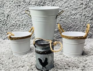 White Metal Bucket Container Round Farmhouse Bundle Of 4 Size Varies Home Decor$15San Diego, CA