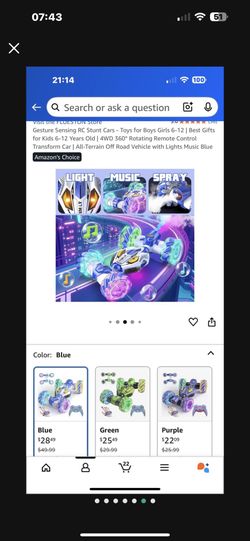 Gesture Sensing RC Stunt Cars - Toys for Boys Girls 6-12 | Best Gifts for Kids 6-12 Years Old | 4WD 360° Rotating Remote Control Transform Car | All-T$15City Of Industry, CA