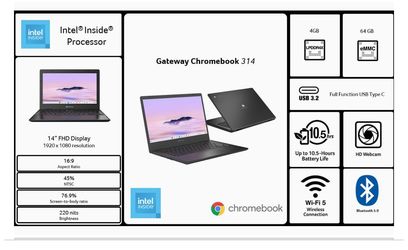 acer Gateway Chromebook 314 CBO314-1H-C476 Laptop | Intel Celeron N4500 | 14" Full HD (1920 x 1080) Display | 4GB LPDDR4X | 64GB eMMC | Wi-Fi 5 802.11$160Chicago, IL
