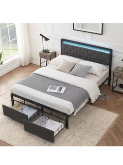 IDEALHOUSE Upholstered Queen Size Bed Frame with LED Lights and 2 Storage Drawers, Platform Bed with Button Tufted Headboard$250El Monte, CA