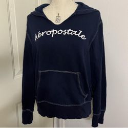 Women’s Vintage Y2K Navy Aeropostale Hoodie with White Lettering and Stitching Size medium$20Jefferson, TX