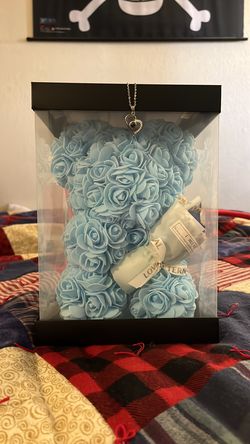 Blue flower bear with I love you necklace$30Bakersfield, CA