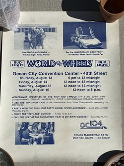 Spuds McKenzie World Of Wheels small blue and white poster 18" H x 14" W$15Henderson, NV