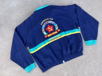 RARE Vintage 90s 1992 America’s Cup Red Star Challenger Leningrad Yacht Club Color Block Windbreaker Polo Style stadium Jacket XL$150Phoenix, AZ