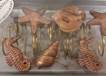 NWT, “Ocean Gems” 12 Hand Painted Shower Curtain Hooks, Copper Sea Horse, Starfish , Seashell $10$10Queens, NY