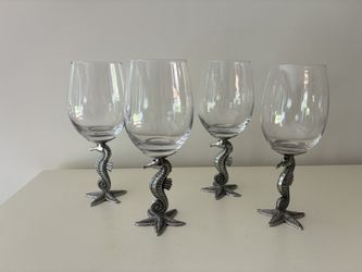 4 Large Pewter Seahorse Stem Wine Glasses with Star Fish Base, (3) 8 3/4" Tall, (1) 7 3/4” Tall, $60. Used once. $60Queens, NY