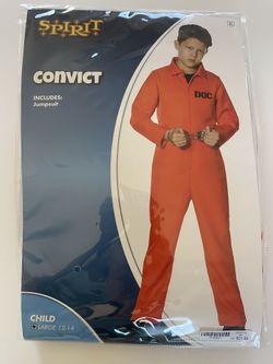 Halloween Costume convict prisoner, jumpsuit, child large 12 to 14$10San Diego, CA