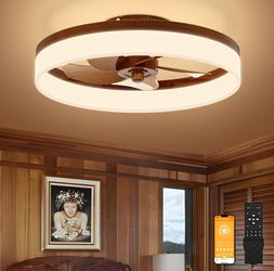 Farmhouse Ceiling Fans with Lights and Remote, 19.7in Low Profile Ceiling Fan Flush Mount, 3000K-6500K Dimmable Bladeless LED Fan Light, Fandelier Cei$70Peoria, AZ