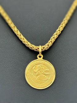 Vintage Tiffany & Co. Necklace 14k gold 18”Long Round Woven Wheat Chain Necklace 4mm & "St. CHRISTOPHER" 14K Gold Medal Charm Pendant$5,000Pompano Beach, FL