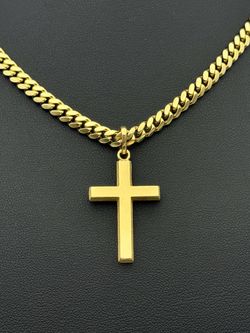 10k solid yellow gold Cuban chain necklace 23.5” 5mm & 14k solid gold cross pendant charm$5,300Pompano Beach, FL