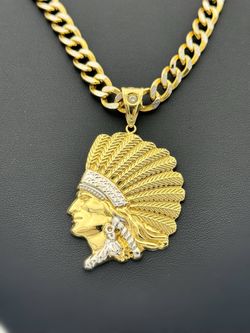 10k solid two tone gold Indian chief Apache head pendant & 22.5” curb chain 8mm Necklace$4,000Pompano Beach, FL