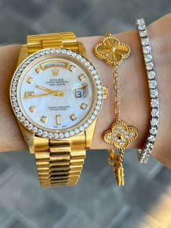 Rolex President 18238 36mm Yellow Gold MOP Custom Baguette Diamond dial & diamond bezel watch$22,000Boca Raton, FL