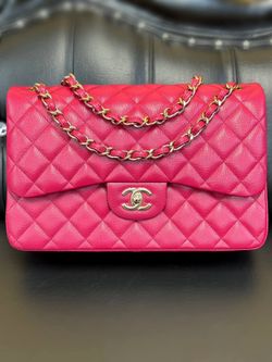 New Rare CHANEL Fuchsia Pink Large Classic Flap Bag Handbag Grained Calfskin Gold Hardware$13,000Boca Raton, FL