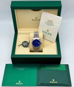 1988 Rolex Datejust 16014 36mm stainless steel jubilee bracelet custom blue rare lapis dial white gold fluted Bezel watch box papers$6,500Pompano Beach, FL