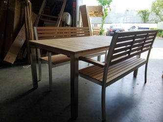 Teak And Stainless Steel Table And 2 Bench's $600Yorba Linda, CA
