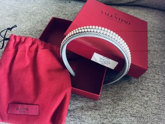 Valentino Satin And Leather Pearl Crystal Headband $100Queens, NY