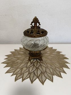 Crackle Effect Glass Bowl with Bronze Color Lid and Base ❤️ Jaron de Vidrio efecto Craquelado$20Westview, FL