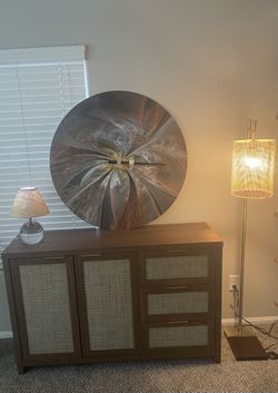 New Wood & Cane Living Room Decor Set – Cabinet, Mini Lamp, Floor Lamp & Modern Wall Clock$599Henderson, NV
