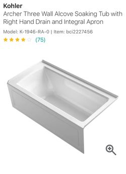 Kohler Archer Three Wall Alcove Soaking Tub with Right Hand Drain and Integral Apron$450Wilmington, CA