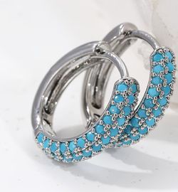 Exquisite Micro Pave 14K White Gold Plated Turquoise Cubic Zirconia Hoop Earrings$16Houston, TX